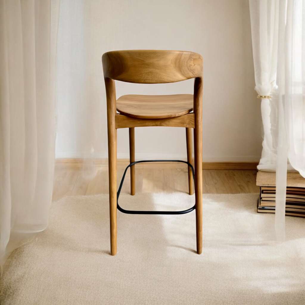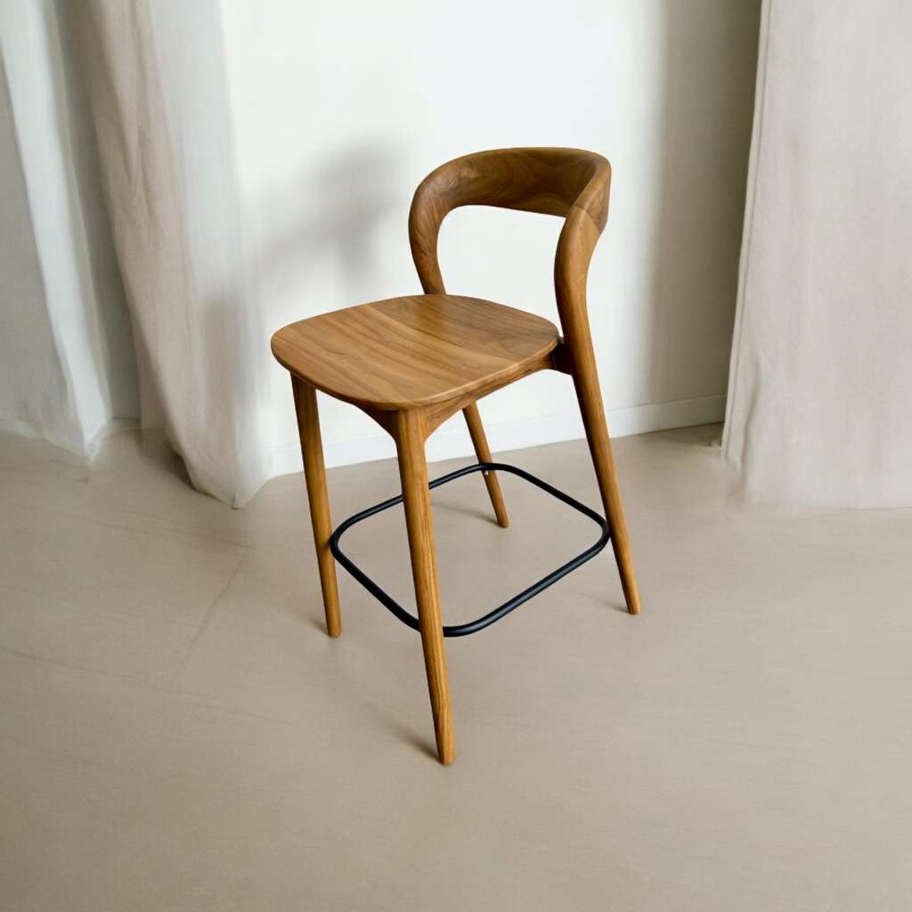 Belangrijkste Kenmerken:Uniek Handgemaakt: Elk exemplaar is uniek, dankzij het vakmanschap van Balinese ambachtslieden.Hoogwaardig Hout: Gemaakt van duurzame en kwalitatieve materialen voor een lange levensduur.Ergonomisch Ontwerp:Voorzien van een stevige metalen voetsteun voor extra stabiliteit en comfort.Tijdloos en Modern Design: Past perfect in elk eigentijds interieur.