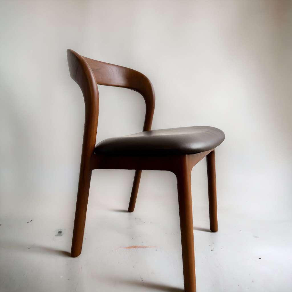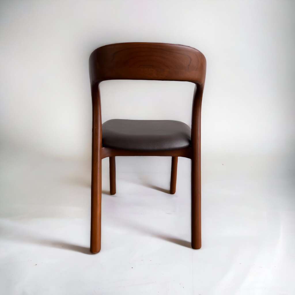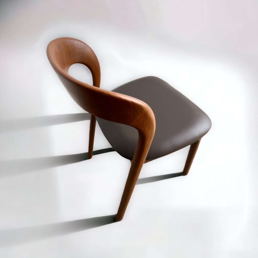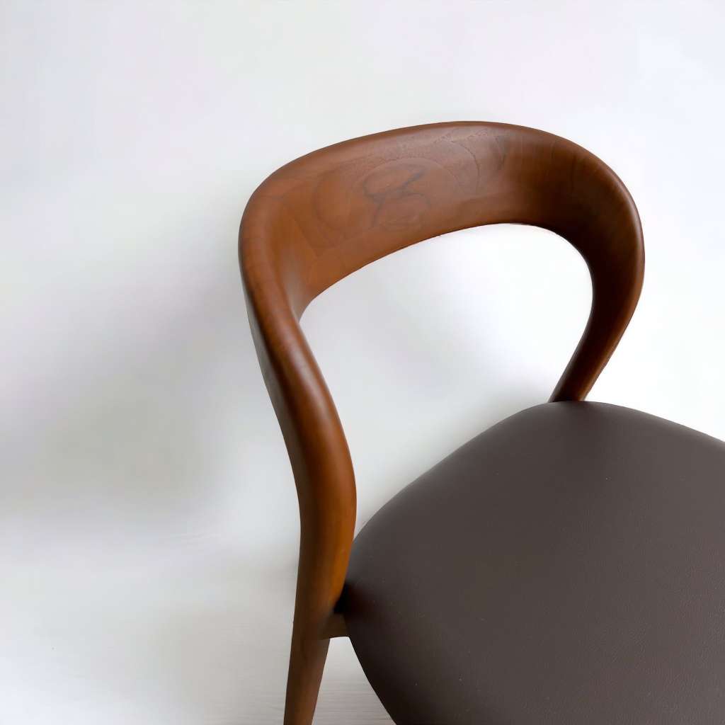 Deze massief houten eetkamerstoel is door zijn design tijdloos. De strakke poten, afwisselend met de ronde zachte leuning zorgen voor een minimalistische uitstraling. In Japan zou men spreken van wabisabi stijl en de Chinezen vinden het Fengshui.